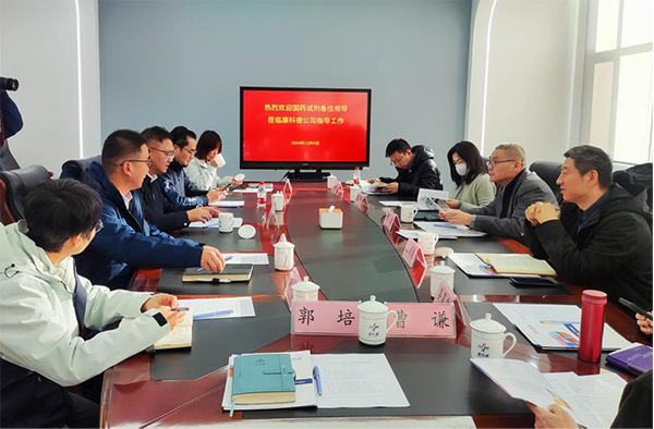 2024年12月9日,國藥化學試劑公司總經理潘波、副總經理王鳳成、采購與供應管理中心總經理惠慧、市場部經理吳晨雯、北京公司總經理王紀宗、北京公司副總經理曹謙等一行蒞臨康科德公司進行交流指導工作??悼频鹿究偨浝硭谓疰溌暑I領導班子進行了熱情接待,并深入開展了工作交流。