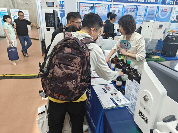 康科德公司此次參展的產(chǎn)品包括液質(zhì)聯(lián)用級試劑(LC-MS)、超純色譜級試劑(UHPLC)、無水溶劑以及專為高校科研需求定制各種規(guī)格高純?nèi)軇?。這些產(chǎn)品純度、穩(wěn)定的性能和廣泛的應用場景,贏得了與會者的高度關(guān)注。展會期間,康科德的展位吸引了眾多高校教師、科研人員及實驗室技術(shù)人員的駐足咨詢,工作人員與專家老師們就產(chǎn)品技術(shù)細節(jié)、應用案例及解決方案進行了深入探討,現(xiàn)場氣氛熱烈。